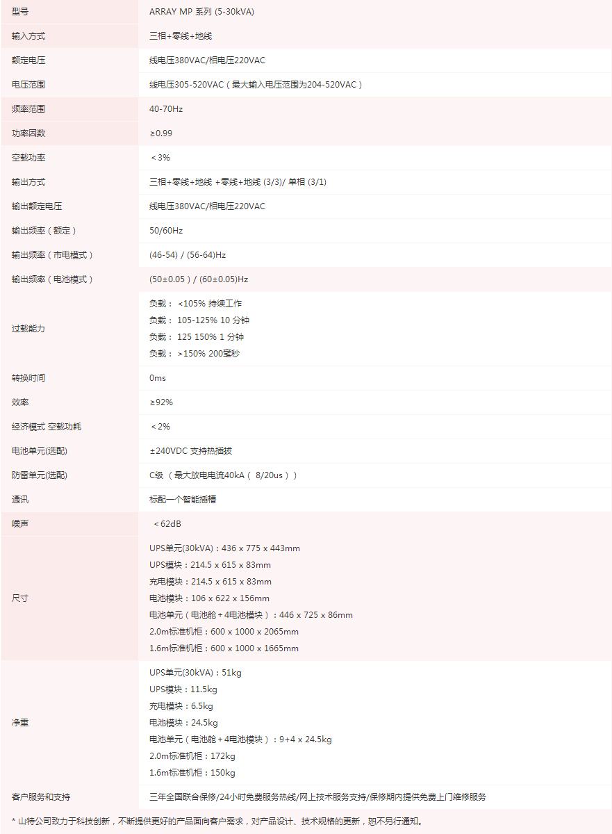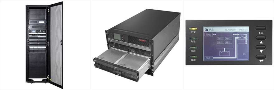 1、ARRAY MP UPS可以為用戶提供將UPS單元、電池單元、配電單元、防雷單元和監控單元等模塊集成在一個機柜里的電力解決方案。