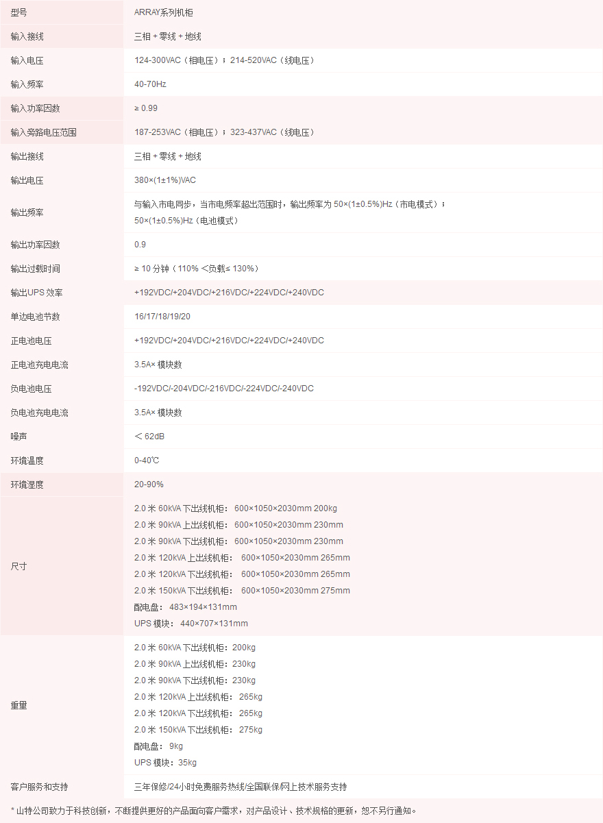 3A3 Pro UPS一個(gè)UPS模塊體積為440×700×131mm(3U),一個(gè)標(biāo)準(zhǔn)2米高的UPS機(jī)柜最多可以安裝10個(gè)UPS模塊,總?cè)萘窟_(dá)到150KVA,而且配電盤也含在其中,再配上與UPS機(jī)柜一般大小的電池柜,便可組成完整的UPS供電系統(tǒng)。由于UPS機(jī)柜和電池柜都采用標(biāo)準(zhǔn)機(jī)柜,與大多數(shù)機(jī)房的負(fù)載設(shè)備機(jī)柜一致,因此可以與負(fù)載并排放置而無需專用的UPS配電房,不僅美觀而且能為客戶最大限度地節(jié)省安裝空間。