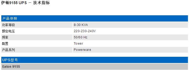 伊頓9155 UPS為公司企業、醫療機構、銀行和工業應用場合中的IT和電氣工程基礎設施或其它關鍵系統提供優質雙轉換后備電源和可升級的運行時間。9155 UPS可以用很小的占地空間提供最大的電池運行時間,是真正的全三相電源保護解決方案。
