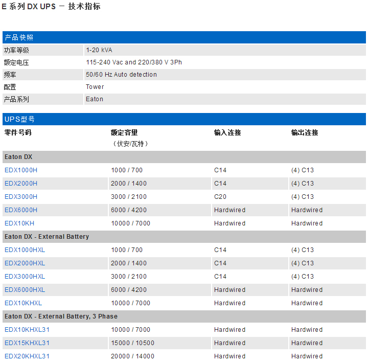 • E 系列 DX UPS 1-20 KVA
