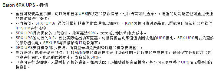 5PX--是一款管理便捷、性能效率出眾、可用性高,靈活性強的Eaton UPS。